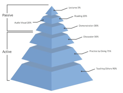 In a previous blog we looked at pedagogy and it is timely perhaps to revisit that. We can ask ourselves, “What are the mindfulness practices we see in other spheres of education?” whether in vocational training or preparation of athletes. There are significant areas of overlap with traditional study of aikido in honing skills and bringing a maturity to our learning. They also start to bring us to the lower levels of the learning pyramid.